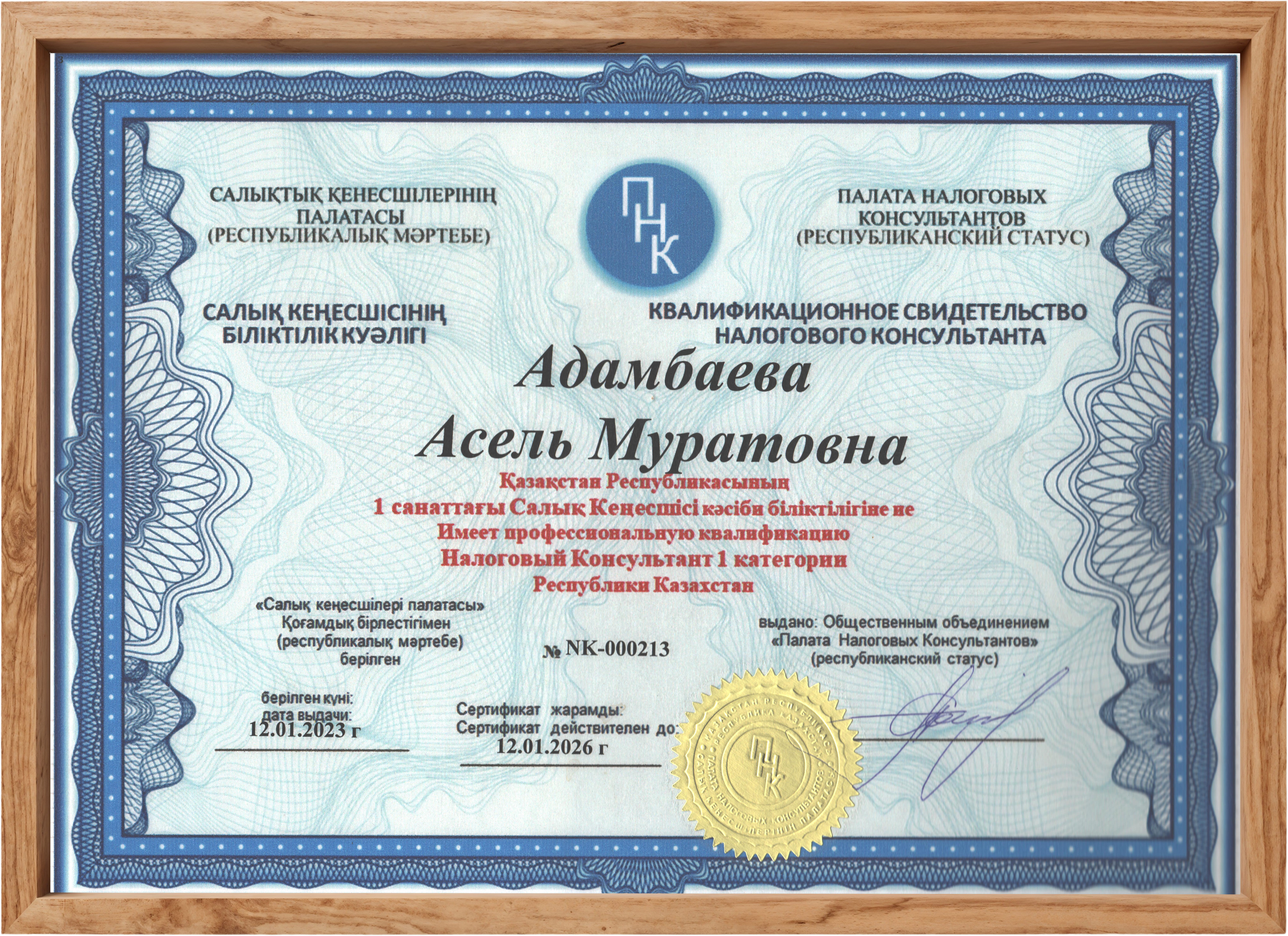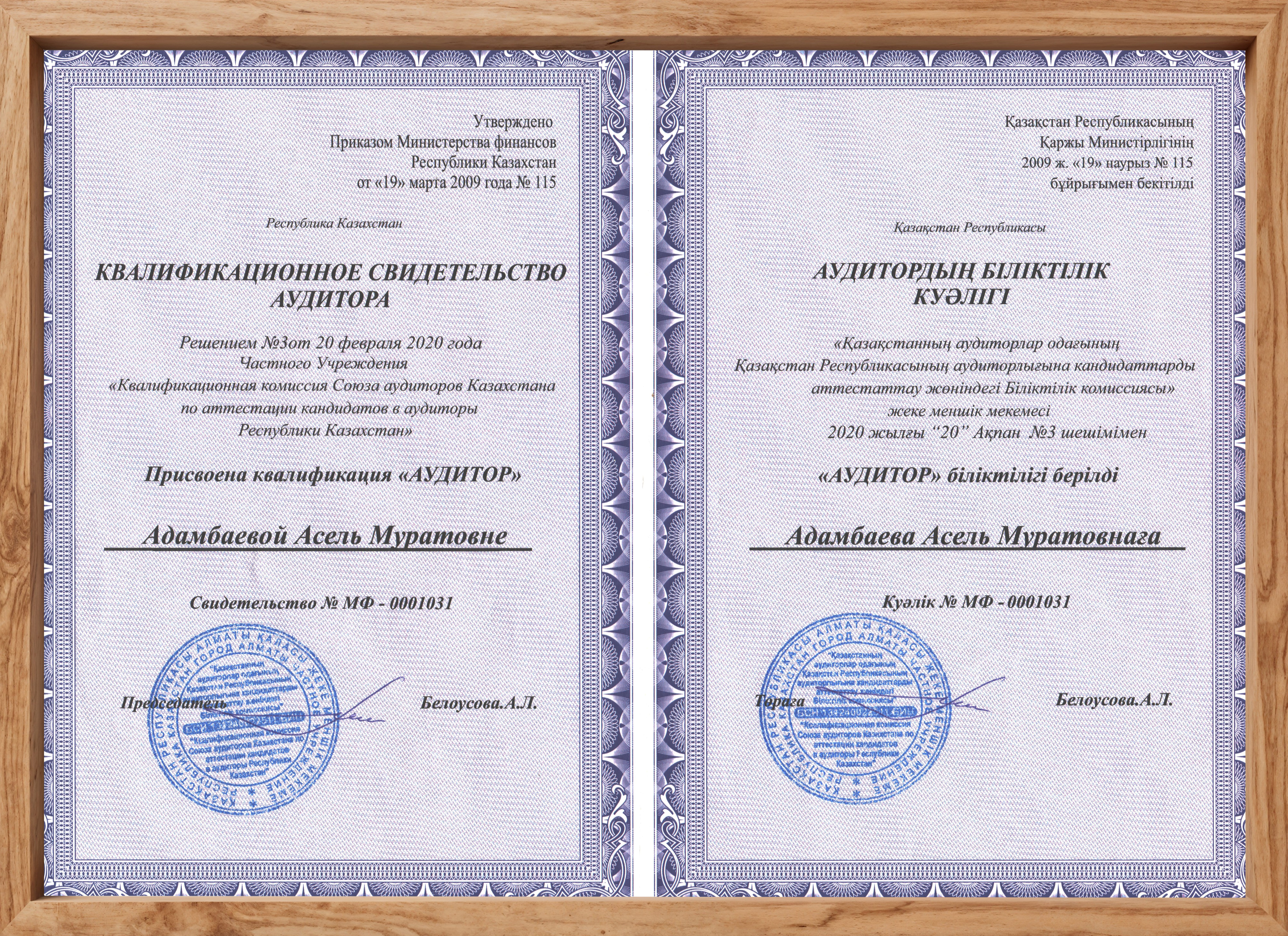 Членство в ПАО «Палата аудиторов Республики Казахстан»